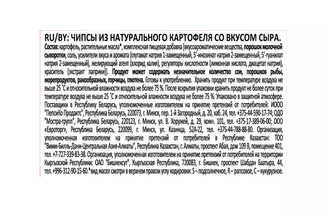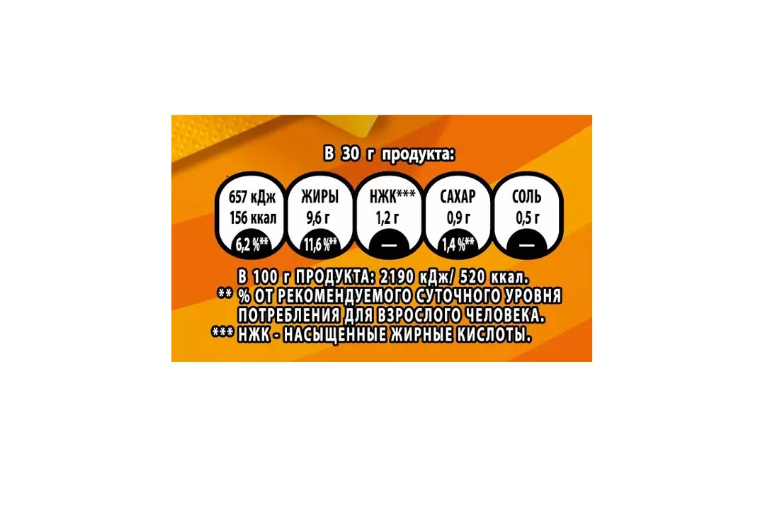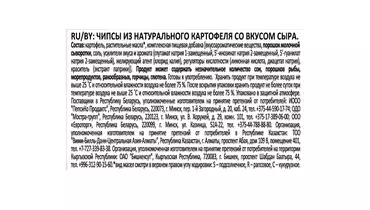 Lay's®— чипсы, каждая пачка которых изготовлена из специально отобранного картофеля и соответствует самым высоким стандартам качества. Яркий вкус сыра в сочетании с хрустящими чипсами Лейс из натурального, отборного картофеля подарят вихрь удовольствия! Насыщенный аромат, аппетитный хруст и уже давно полюбившийся вкус! Это Лейс со вкусом сыра! Каждый день вкуснее с Lay's! - 100% натуральный нарезанный картофель - Качественные ингредиенты - Насыщенный вкус сыра Страна производитель-Россия