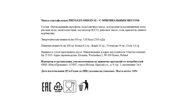Чипсы картофельные Pringles Оригинал 165 г / Супермаркет