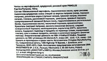 Чипсы картофельные Pringles Паприка 165 г / Супермаркет