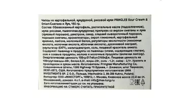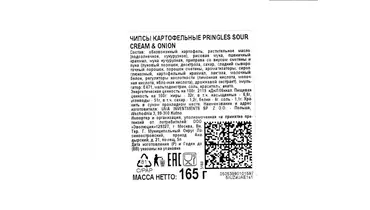 Чипсы картофельные Pringles Сметана и Лук 165 г / Супермаркет