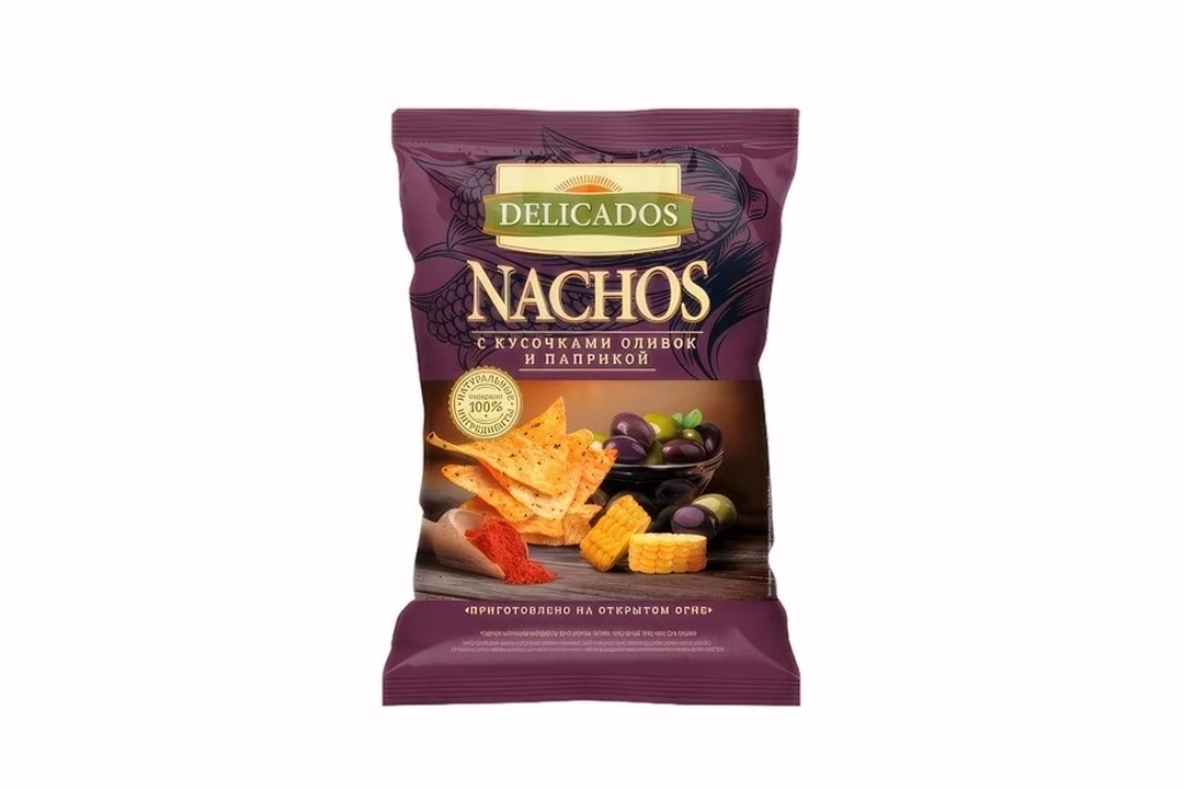 Чипсы кукурузные Delicados Nachos с кусочками оливок и паприкой 150 г / Супермаркет