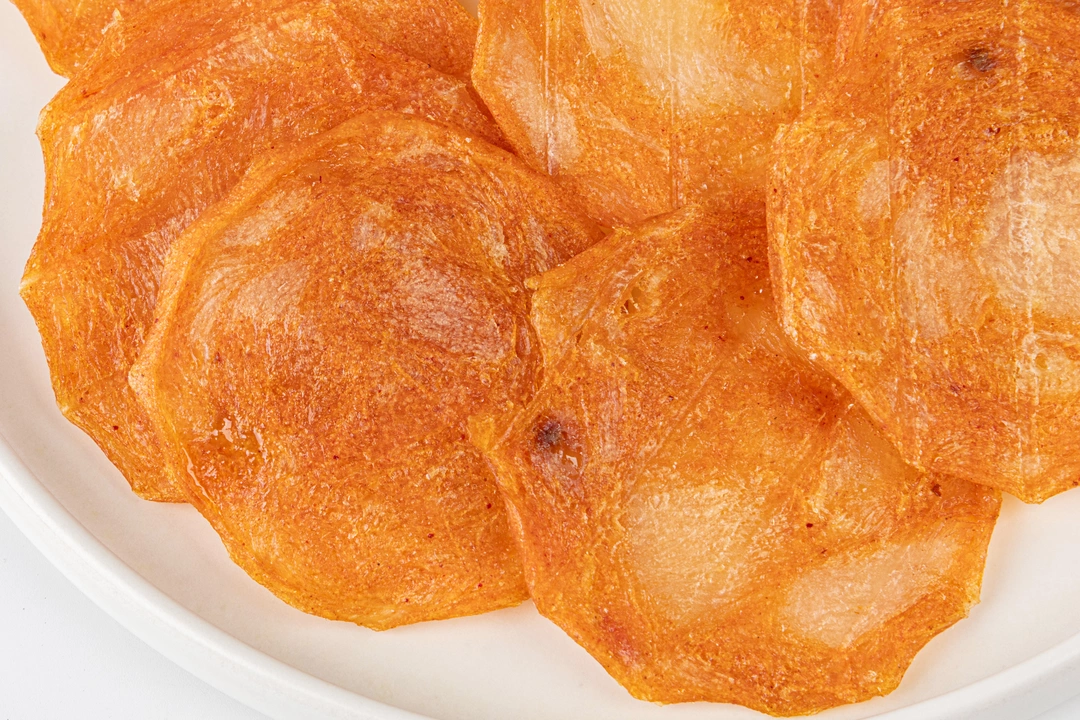 Сыровяленые куриные чипсы с ярким вкусом чоризо и лёгкой перчинкой. Филе грудки пропитано ароматом паприки, чеснока и кориандра. Благодаря особому способу вяления мясо остаётся плотным, но не пересушенным, с долгим послевкусием. А ещё это подходящий вариант для питательного перекуса: в одной пачке 26 г белка. На поверхности могут образоваться кристаллы соли — это естественный процесс, который не влияет на вкус и качество продукта.