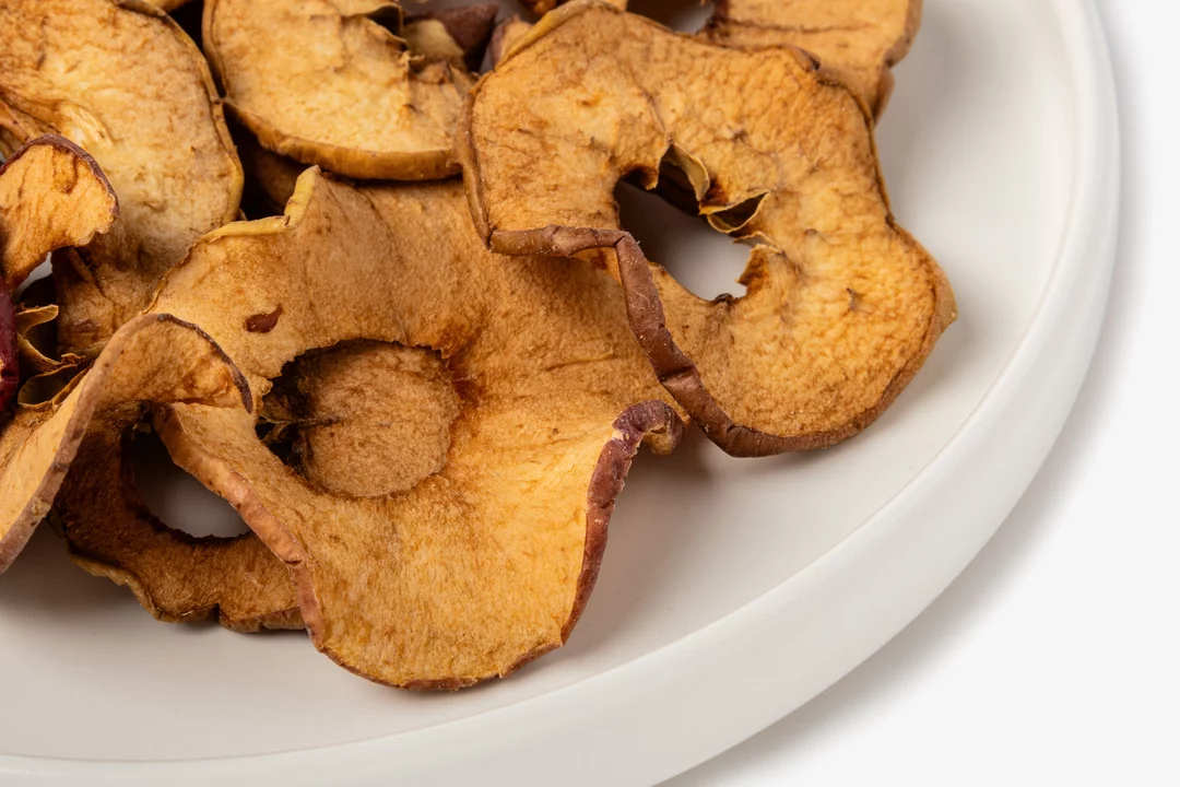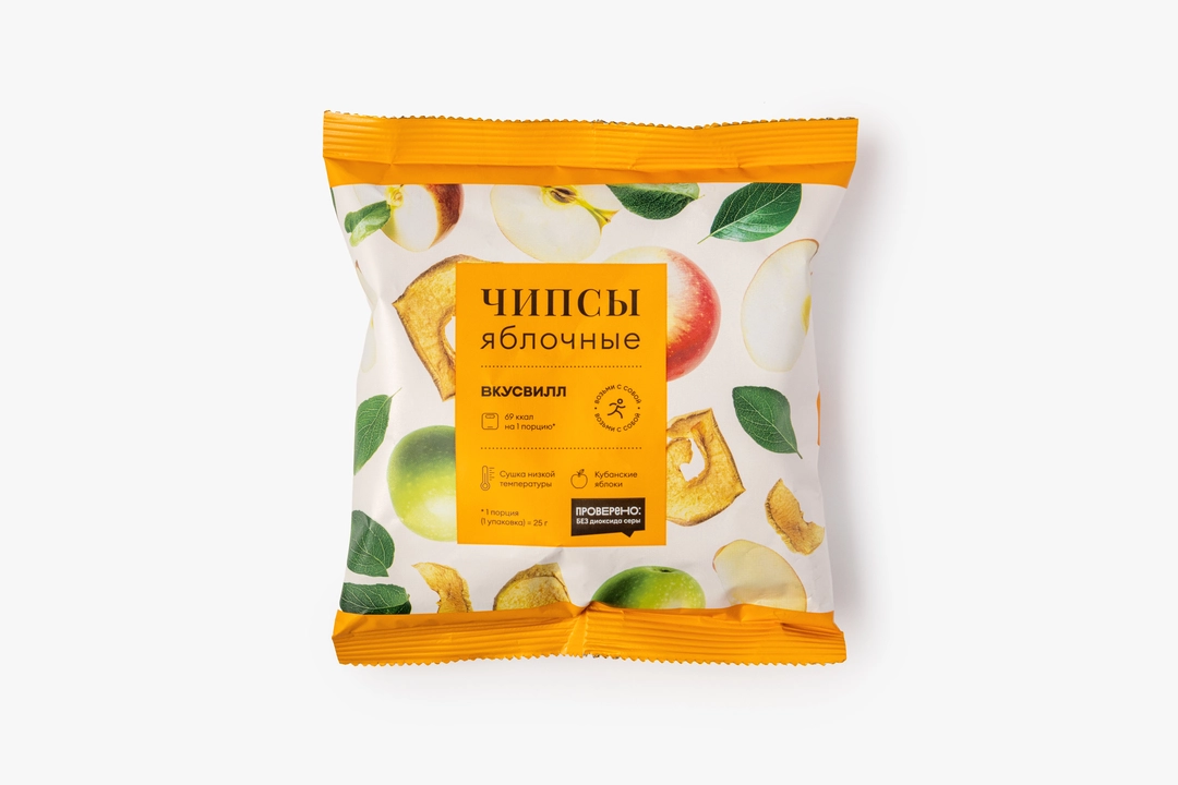 Чипсы из ароматных спелых яблок, изготовленные методом низкотемпературной сушки. Такая технология позволяет сохранить не только насыщенный вкус фруктов, но и максимум их природной пользы. Чипсы не содержат сахара и других добавок, поэтому станут идеальным дополнением полезного рациона. А благодаря низкой калорийности — всего 90 ккал на целую упаковку — они станут отличным лакомством при строгом питании. Чипсами можно побаловать себя просто так, перекусить в дороге или подать к чаю, сдобрив небольшим количеством мёда или корицы.