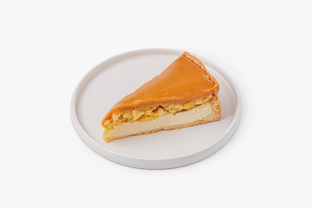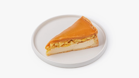 Чизкейк с плотной творожной текстурой и выраженным яблочно-карамельным вкусом. Основу составляет тесто на сливочном масле. Начинка состоит из яблок, творожного сыра, сметаны и варёного сгущённого молока.