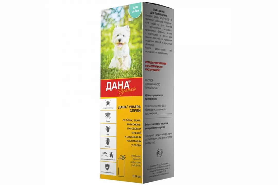 Дана Ультра Спрей для собак от блох, вшей, власоедов и других насекомых 100мл (Апиценна)