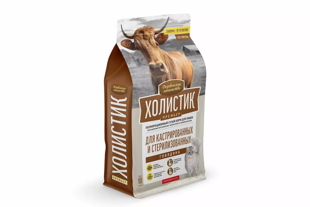 ДЕРЕВЕНСКИЕ ЛАКОМСТВА Холистик Премьер Корм сух.говядина д/стерилизованных кошек 400г / Супермаркет