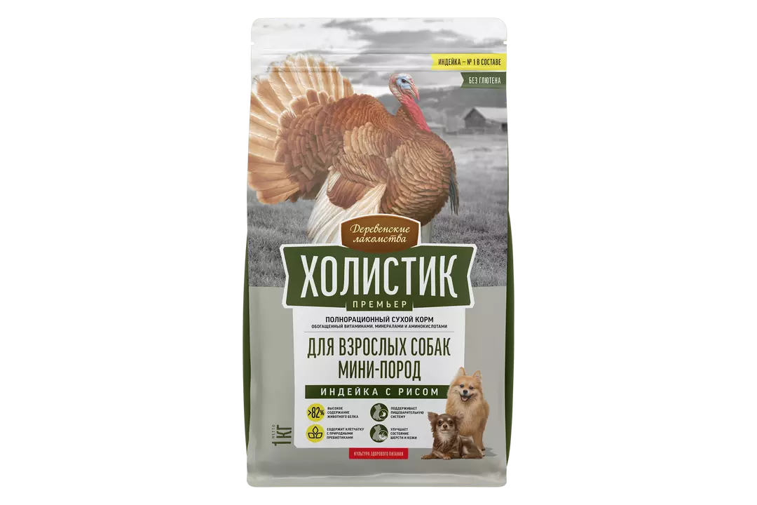 ДЕРЕВЕНСКИЕ ЛАКОМСТВА Холистик Премьер Корм сух.индейка с рисом д/собак мини-пород 1кг / Супермаркет