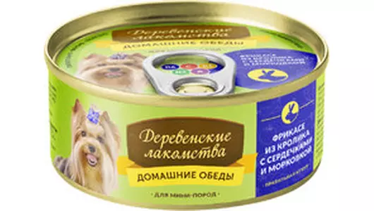 ДЕРЕВЕНСКИЕ ЛАКОМСТВА Корм влаж.фрикасе из кролика с сердечками и морк.д/собак мини пород конс.100г купить с бесплатной доставкой на дом всего за 2 часа из ВкусВилла. Также можно оформить онлайн-заявку на самовывоз и забрать собранный заказ через 30 минут. Цены, отзывы о товарах от наших покупателей, действующие акции на официальном сайте ВкусВилл.