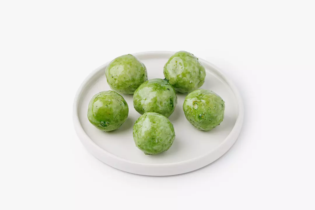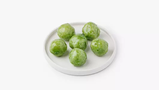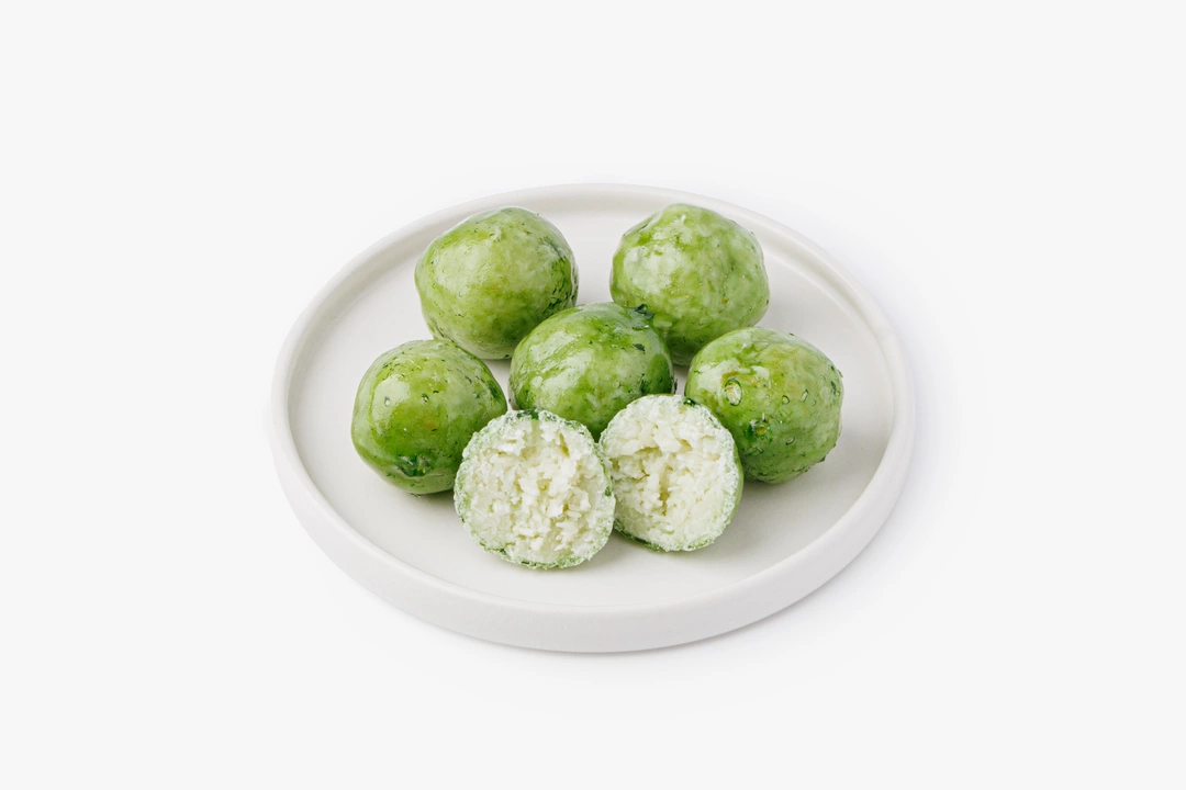 Плотные кокосовые шарики с ореховой начинкой в тонкой карамельной глазури. Сгущённое молоко и сливочное масло придают лакомству особенную нежность и умеренную сладость, а фисташковая паста добавляет яркий цвет и вкус. Подавайте десерт с чёрным кофе или травяным чаем. Удобная упаковка также позволяет взять несколько штук с собой для перекуса.