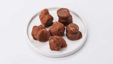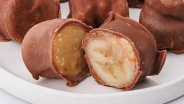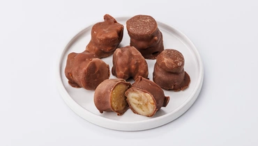 Кусочки спелого банана в шоколадной оболочке с кокосовыми и ореховыми нотами. Под слоем сладкой глазури солоноватая арахисовая паста. В одной порции 6 миниатюрных десертов.