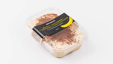 Нежнейший шоколадный бисквит под воздушной бананово-сырной шапочкой. Состав проверен: нет заменителей молочного жира, сорбиновой кислоты, искусственных красителей и ароматизаторов