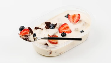 Десерт со слоями воздушного бисквита и сливочного крема украшен свежей клубникой и голубикой. В основе — шоколадные коржи, пропитанные кофейным сиропом. Нежный крем приготовлен из сливок, мягкого сыра и сгущённого молока. Сбалансированный вкус с нотками какао, кофе и летних ягод.
