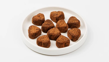 Мягкий десерт на основе фиников с деликатным сладковатым вкусом и ореховой ноткой. Внутри — финиковая паста, какао-масло, какао и дроблёный фундук, сверху — тонкая обсыпка из неалкализованного какао. За счёт натуральных ингредиентов вкус получается плотным, как у настоящего шоколадного трюфеля. Подходит для небольшого сладкого перекуса или дополнения к чашке кофе. Не содержит добавленного сахара — только натуральная сладость фиников.