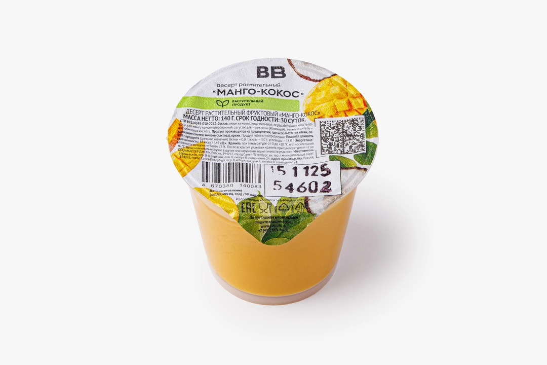 Мы знаем точно: десерты могут быть не только вкусными, но и полезными! Таковым однозначно является это лакомство из сочного спелого манго и ароматного кокоса. У него яркий тропический вкус и густая кремовая консистенция — просто тает во рту! Состав полностью натуральный, без животных ингредиентов, сахара и подсластителей. Калорийность — всего 83 ккал на 100 г. Так что такой десерт разнообразит даже самый строгий рацион!