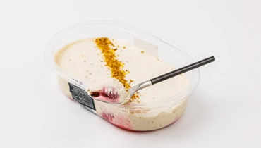 Замороженный традиционный итальянский десерт со сливочным кремом, лёгкой сладостью халвы, деликатной кислинкой цельных ягод малины и дроблёными фисташками. Приедет к вам в порционном контейнере. Продукт не нужно размораживать, его едят как мороженое — сразу из морозильной камеры.
