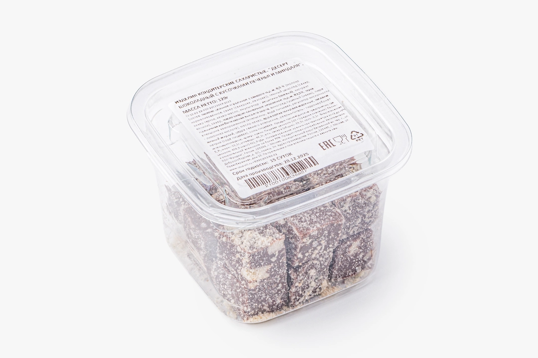 Шоколадные кубики с хрустящим печеньем, приготовленные со сгущённым молоком, жареным миндалём и изюмом. Своей текстурой лакомство напоминает одновременно помадку и сливочную ириску. А необычность вкусу придают пюре и цедра апельсина.