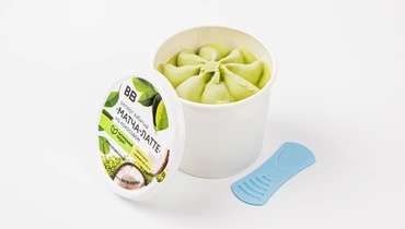 Лёгкий замороженный десерт с ярким вкусом матчи на основе напитка из мякоти кокоса. Текстура мягкая и воздушная. Матча даёт сочный цвет и ненавязчивую травянистую горчинку, а кокос добавляет сливочности и экзотических нот. В составе — только растительные компоненты, без молока и сахара, а сладость обеспечивает мальтит. Освежает, не перегружает вкусами и хорошо подойдёт тем, кто ищет на десерт что-то необычное и растительное. Порция компактная, с ложечкой внутри — удобно взять с собой или съесть сразу.