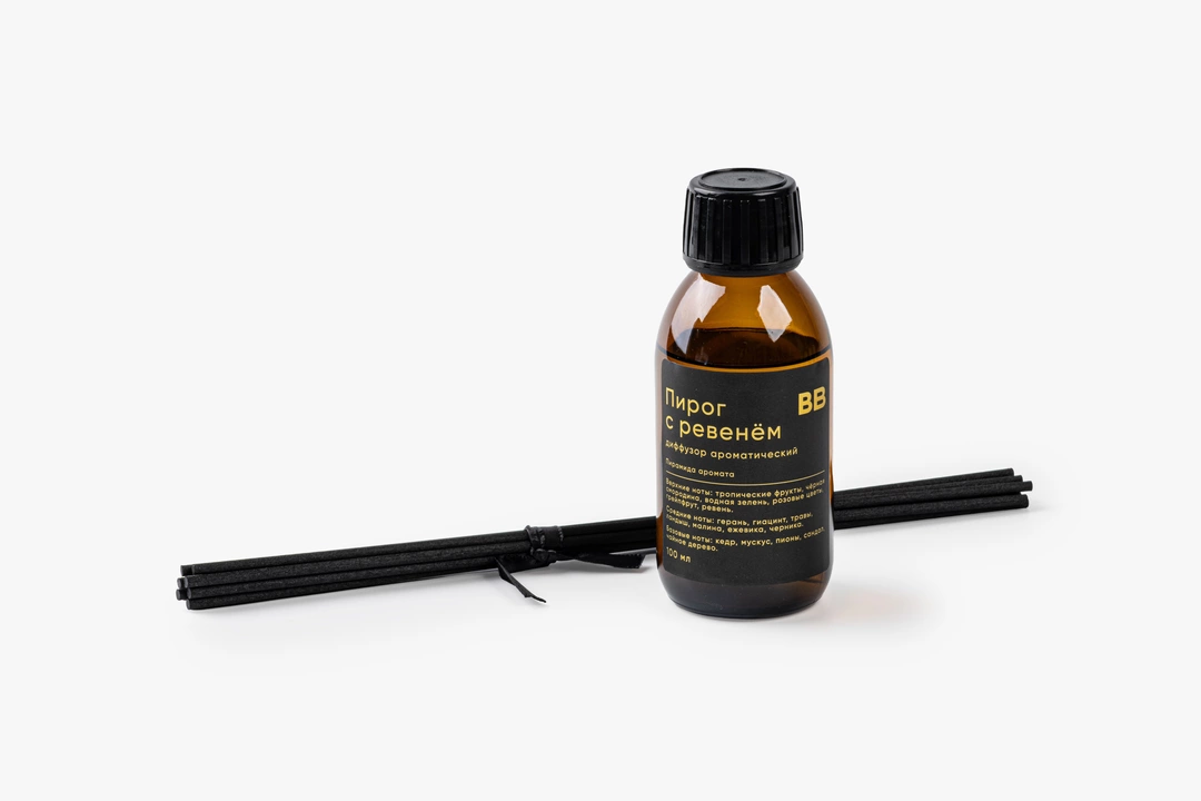 Ароматический диффузор с яркой сладко-кислой композицией ревеня и тёплых фруктовых нот. Парфюмерная смесь постепенно раскрывается через палочки из микрофибры, наполняя пространство мягким, уютным ароматом. Подходит для создания спокойной атмосферы и лёгкого фонового звучания в комнате.