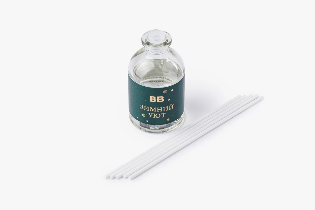 Ароматический диффузор с тёплой зимней композицией и палочками из фиброволокна. Парфюмерная смесь постепенно раскрывается и создаёт дома мягкий, спокойный аромат. В комплект входит открытка — готовый небольшой подарок в сезон уютных вечеров.