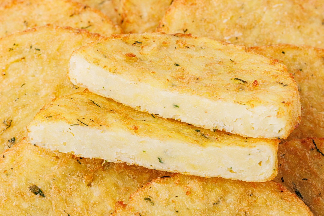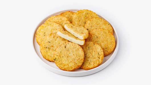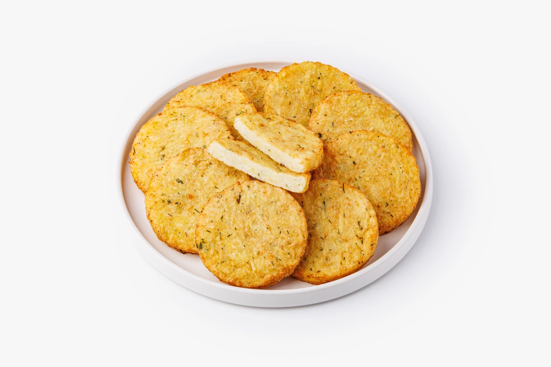 Сытные, в меру пышные картофельные оладьи с румяной корочкой. Готовим их из свежего картофеля с щепоткой сушёного укропа, чеснока и перца. После обжарки бережно замораживаем, чтобы сытное блюдо всегда было у вас под рукой. Вам нужно только разогреть их в микроволновой печи. Подавать драники советуем с густой сметаной или со слабосолёной красной рыбой — это классика.