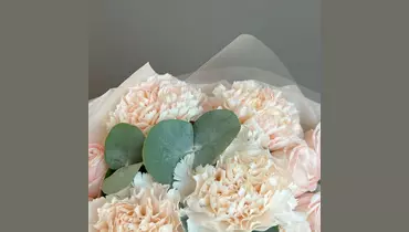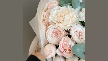 Гвоздика - 6 шт. Роза кустовая пионовидная - 5 шт. Упаковка дизайнерская - 1 шт.