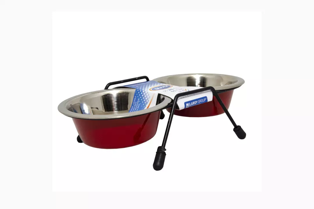 DUVO+ Миска для животных металлическая двойная на подставке, красная, D16см/950мл (Бельгия)
