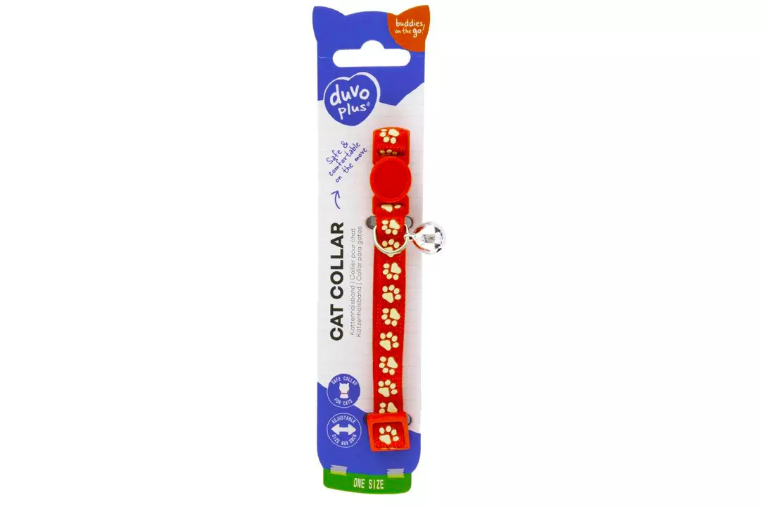 DUVO+ Ошейник для кошек нейлоновый "Белые лапки", красный, 20-30см/10мм (Бельгия)