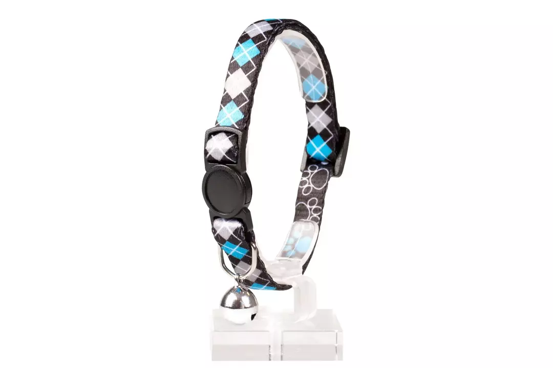 DUVO+ Ошейник для кошек нейлоновый "Квадрат шотландский", чёрно-голубой, 20-30см/10мм (Бельгия)