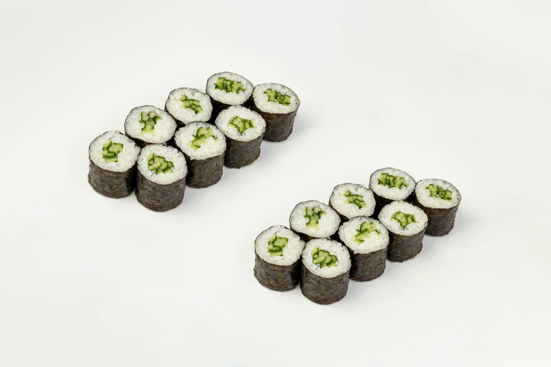 Двойная порция классического свежего ролла в идеальном сочетании риса, нори и хрустящего огурца. Подается с соевым соусом, маринованным имбирем, васаби.