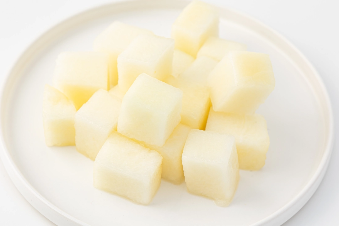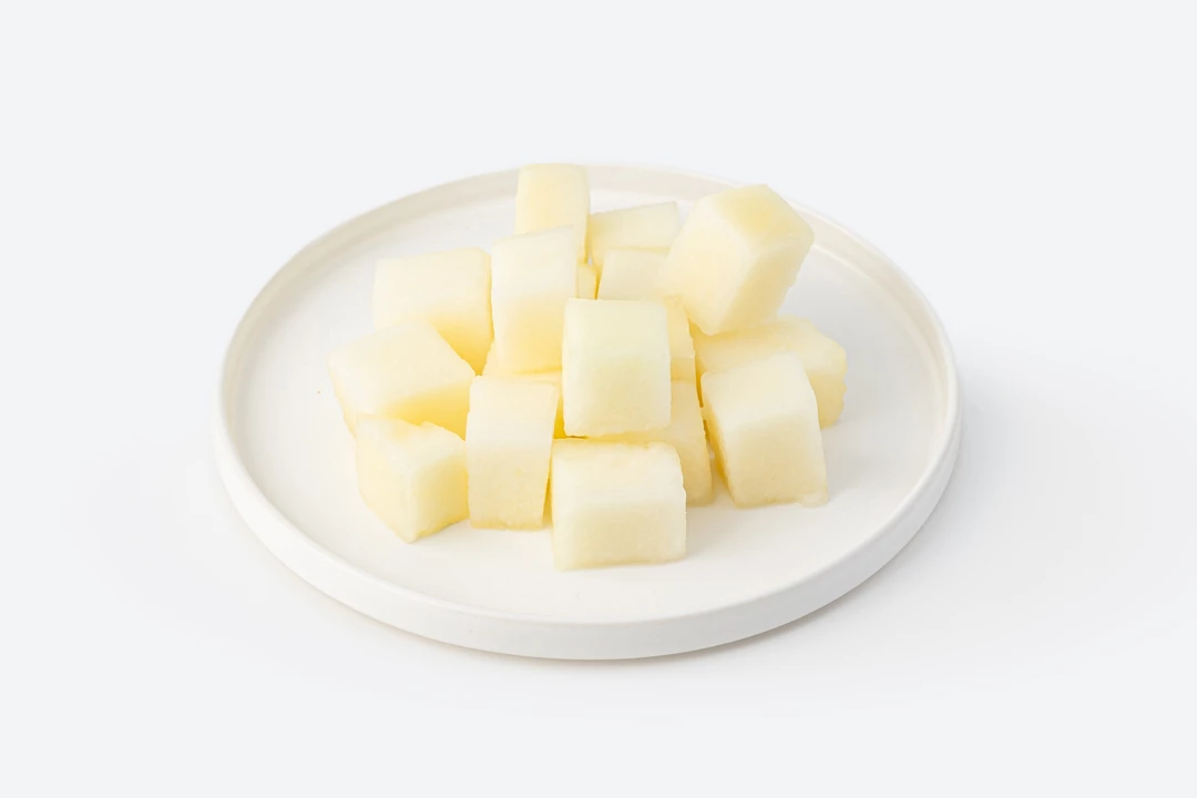 Нежные кубики спелой дыни с медовым ароматом, упакованные в удобный стаканчик. Идеальное лакомство, чтобы освежиться и насладиться сладостью. Отлично сочетается с прошутто или сырами для легкой изысканной закуски, а также подойдет в качестве низкокалорийного перекуса.