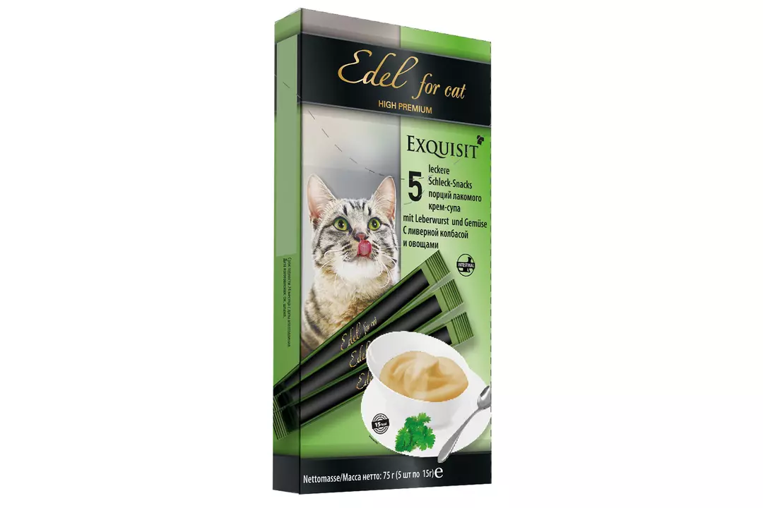 EDEL CAT Лакомство Крем-суп ливерная колбаса,овощи д/кошек 5шт 75г / Супермаркет