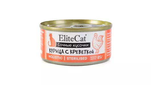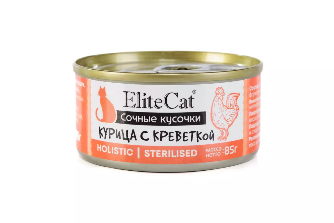 ELITECAT Дополнительное питание для кошек сочные кусочки "Курица с креветкой", 85гр / Супермаркет