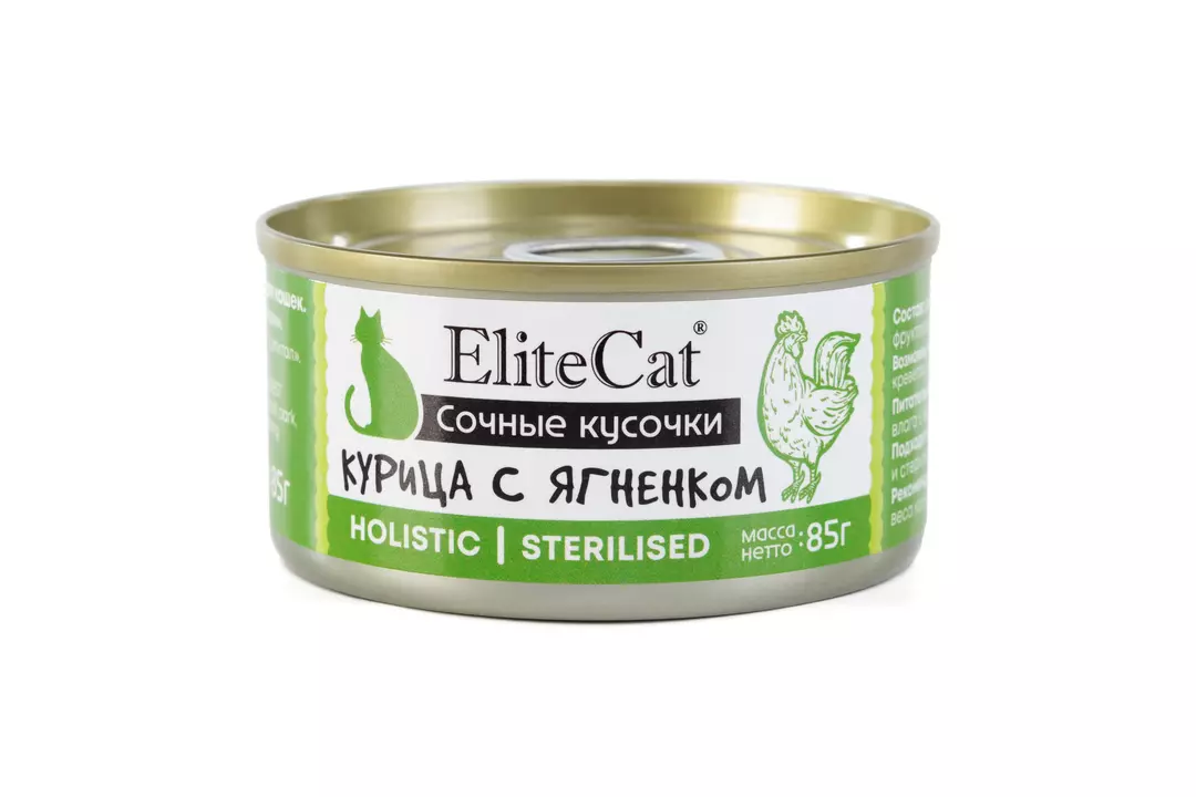 ELITECAT Дополнительное питание для кошек сочные кусочки "Курица с ягненком", 85гр