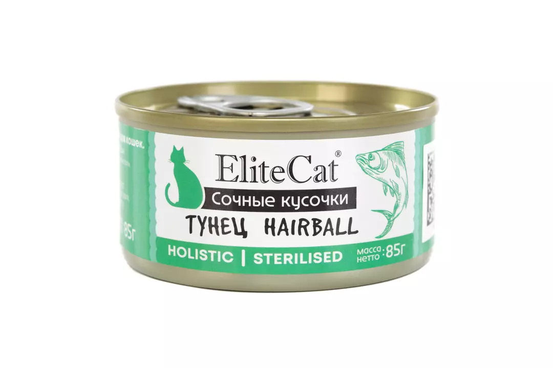 ELITECAT Дополнительное питание для кошек сочные кусочки "Тунец" для вывода шерсти, 85гр / Супермаркет