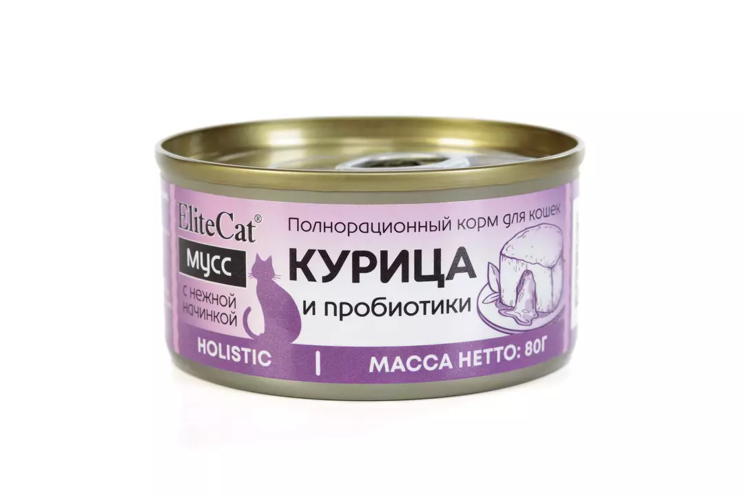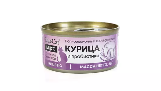 ELITECAT Полнорационный корм для кошек консервированный "Курица и пробиотики", мусс, 80гр / Супермаркет