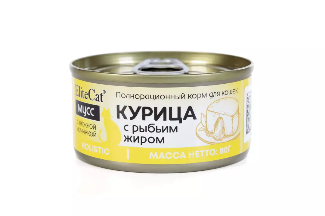 ELITECAT Полнорационный корм для кошек консервированный "Курица с рыбьим жиром, мусс, 80гр