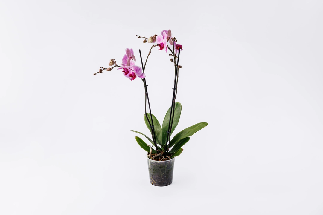 Фаленопсис — одна из самых популярных орхидей для дома. Он красиво цветёт и при этом не требует сложного ухода. Растению подойдёт рассеянный свет. Если цветок стоит на южной стороне, окно стоит затенить лёгкой занавеской. Оптимальная температура — от 19 до 25 градусов, важно избегать резких перепадов и сквозняков. Влажность воздуха желательно поддерживать на уровне 50–70%. При сухом воздухе можно поставить горшок в поддон с влажной галькой, следя, чтобы дно не касалось воды. Опрыскивайте орхидею аккуратно, стараясь не допускать попадания влаги в центр розетки. Полив проводите методом погружения, когда корни становятся серебристыми. Весной и летом цветок нужно подкармливать раз в неделю слабым раствором удобрения для орхидей, а зимой — примерно раз в месяц. После цветения удалите засохший цветонос, а живой можно укоротить. При правильном уходе растение цветёт до полугода, а затем уходит на отдых, чтобы набраться сил для новых бутонов.