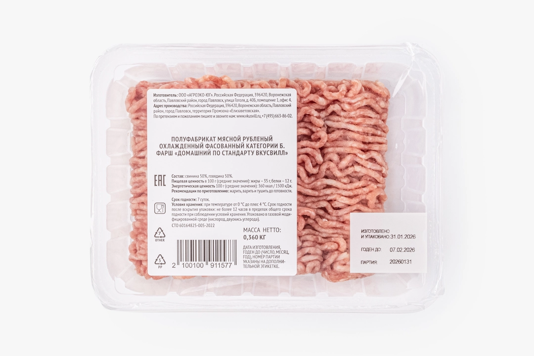 Фарш "Домашний по стандарту ВкусВилл", 360 г