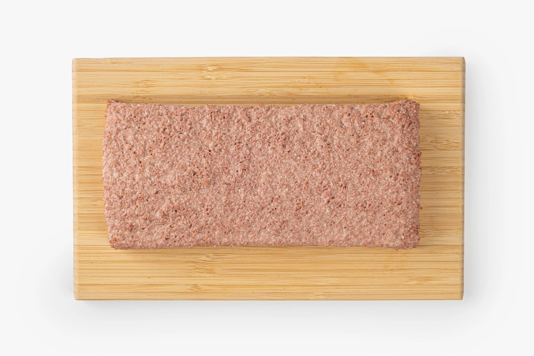Растительный фарш с плотной текстурой и насыщенным вкусом, напоминающим традиционный мясной. В составе — смесь растительных белков (соевого, горохового и рисового) и растительных масел, которые делают его сочным и ароматным. Лёгкая нотка специй и чеснока добавляет выразительности, а свекольный краситель придаёт естественный оттенок. Подходит для приготовления котлет, пасты или запеканок. В его составе нет усилителей вкуса и искусственных ароматизаторов.