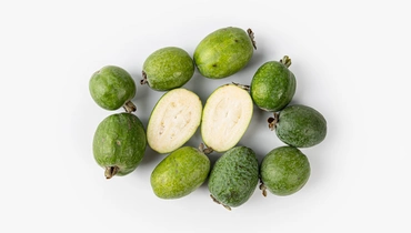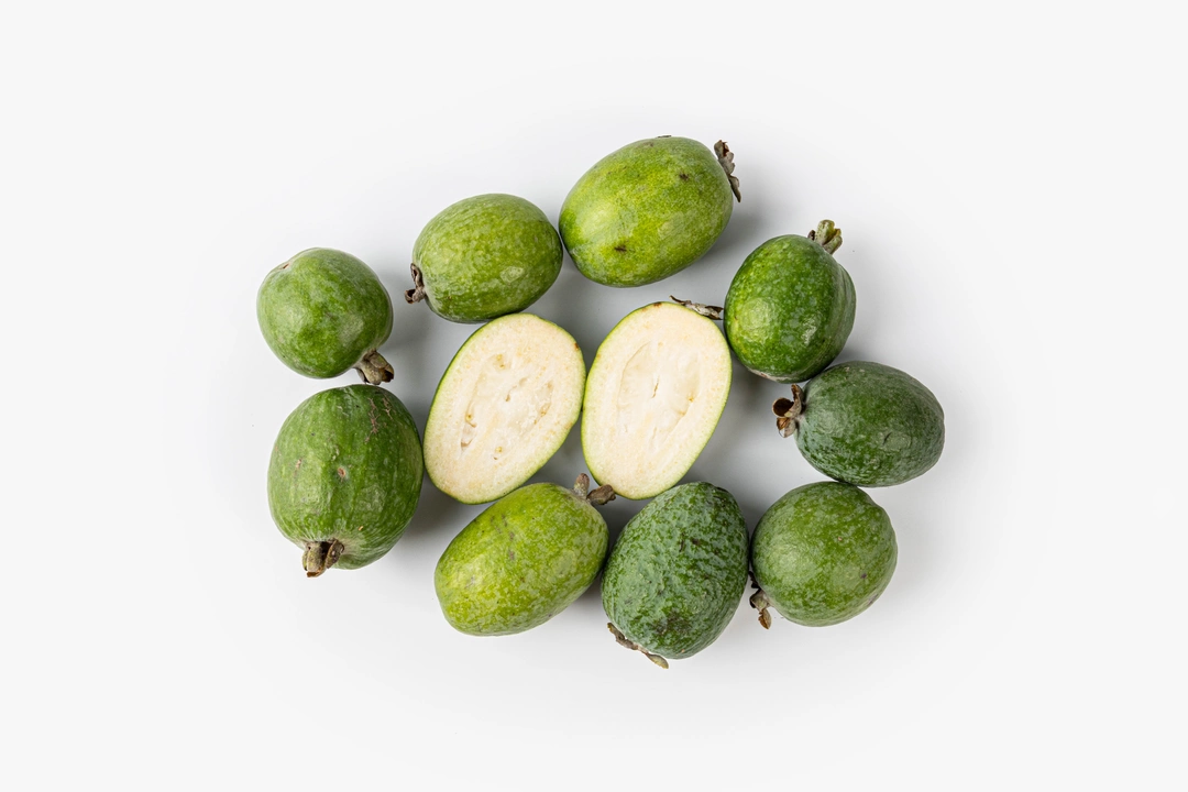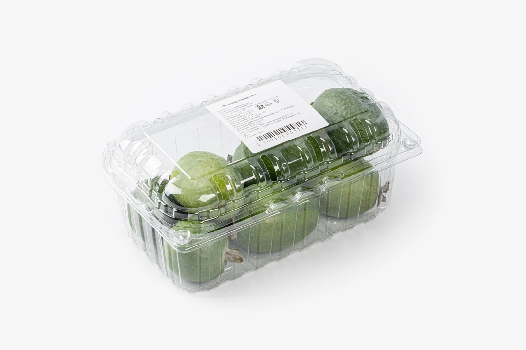 Ароматные зелёные плоды с плотной кожицей и яркой, зернистой мякотью. Вкус у фейхоа освежающий — сладкий, с лёгкой кислинкой и оттенками ананаса и киви. Плоды созревают осенью и обладают насыщенным ароматом. Их можно есть свежими ложкой, разрезав пополам, добавлять в смузи, салаты или варенье. Краснодарские фейхоа отличаются плотной структурой и ярко выраженным вкусом.