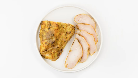 Мы выбрали для вас самую вкусную куриную грудку, слегка её посолили, замариновали в пряном соусе с душистыми травами и овощами в традициях ближневосточной кухни и долго томили под вакуумом. Мясо получилось нежным, сочным и аппетитным. Его можно разогреть в микроволновой печи или поджарить на сковороде гриль, а можно нарезать ломтиками и подать на стол с гарниром или в качестве закуски. Оно подойдёт для приготовления салатов, сэндвичей или сытного ужина.