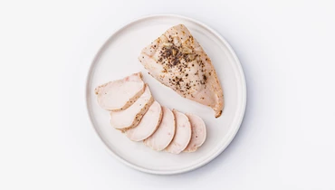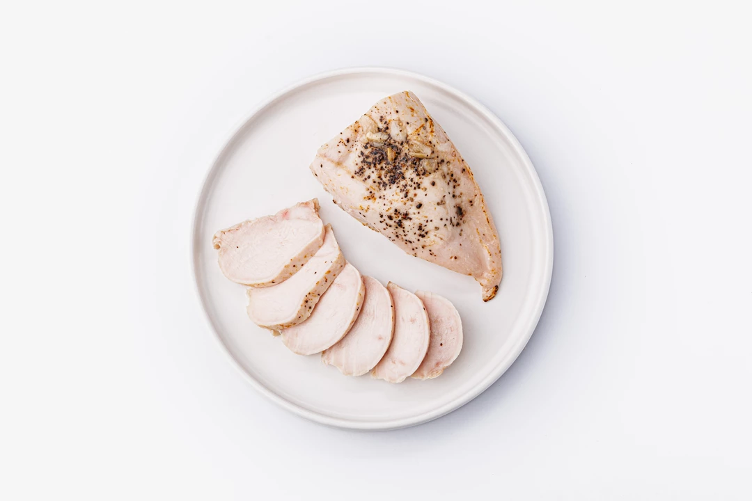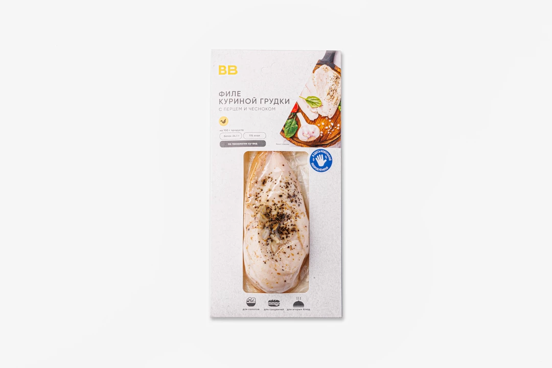 Сочное и нежное филе, приготовленное методом су-вид. Приправлено чесноком, дроблёным чёрным перцем и луковым концентратом. Подходит для приготовления сэндвичей, боулов и салатов. Хорошо сочетается с фетой, инжиром и руколой.