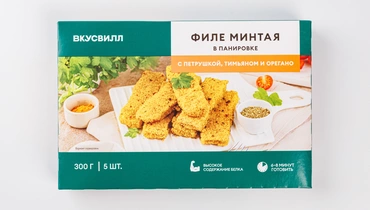 Нежное филе минтая в панировке, которая при тепловой обработке образует румяную корочку и сохраняет рыбу мягкой и сочной. Для этого блюда мы добавили к рыбе рубленую петрушку, тимьян и орегано, чтобы придать ей душистый аромат. Минтай хорош при любом способе приготовления: его можно обжарить на сковороде или запечь в духовке. Подавайте его на стол с любимым соусом, лёгким гарниром или овощным салатом.