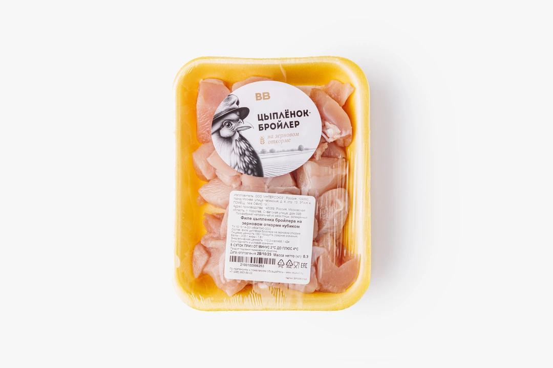 Филе цыпленка бройлера на зерновом откорме кубиком