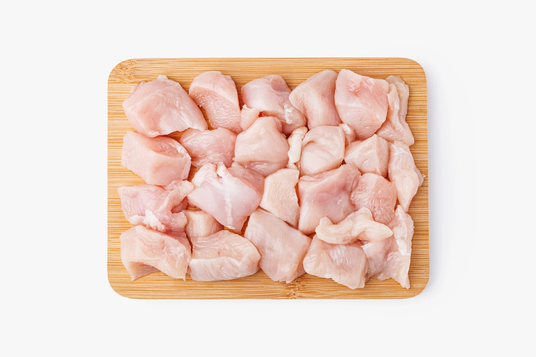 Нарезанное кубиками филе цыплёнка на зерновом откорме — удобный формат для быстрого приготовления. Мясо получается нежным и сочным, с естественным мягким вкусом. Подходит для обжарки, тушения, запекания или добавления в салаты и вок-блюда. Благодаря ровной нарезке кусочки прожариваются равномерно и сохраняют сочность внутри. Хорошо сочетаются с овощами, рисом или сливочными соусами. Продукт охлаждённый, требует термической обработки.