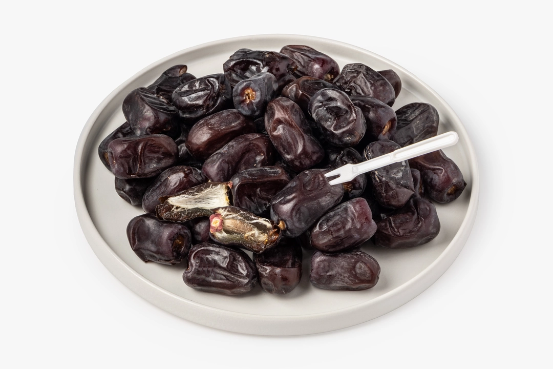 Финики с тонкой матовой кожицей и медовым вкусом. Мякоть волокнистая, с карамельными нотами, косточка легко отделяется. Продукт не содержит добавленного сахара, поэтому станет альтернативой привычным сладостям и подойдёт для перекуса в течение дня. Из фиников можно приготовить домашние конфеты или добавить их в десерты и выпечку