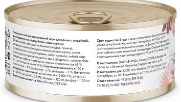 Florida Preventive Line - это линейка профилактических кормов для питомцев с разными физиологическими потребностями в питании. Рационы Florida Preventive Line содержат питательные компоненты, которые необходимы для поддержания здоровья и профилактики развития различных заболеваний у взрослых кошек и собак. Линейка Florida Preventive Line объединяет в себе природную пользу и современные технологии. Для производства используются высококачественное мясо и натуральные растительные ингредиенты, которые выращиваются и собираются вручную в экологически чистых районах России. Мясные консервы Florida Preventive Line Gastrointestinal - это полнорационный сбалансированный корм для кошек, который предназначен для поддержания здоровой работы желудочно-кишечного тракта. Легкоусвояемые белки и высокое содержание клетчатки способствуют хорошей усвояемости диеты и нормализации перистальтики кишечника. Перед применением корма рекомендуем проконсультироваться с ветеринарным врачом. Не содержит искусственных красителей, ароматизаторов или консервантов, ГМО. Рекомендации по кормлению: 30-40г на 1кг веса кошки. Суточная норма может варьироваться в зависимости от возраста, комплекции и уровня активности вашего питомца. Не забывайте своевременно пополнять миску свежей питьевой водой. Возможно смешанное кормление (сухой + влажный корм)
