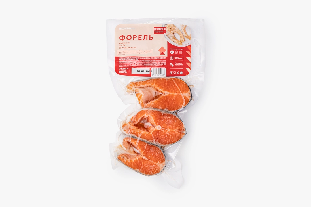 Количество стейков может варьироваться. Чтобы приготовить вкусное и эффектное блюдо из форели, не нужно быть опытным кулинаром. Мясо у неё очень нежное, ароматное, с богатым самодостаточным вкусом. А вот природный оттенок красной рыбы — характеристика непостоянная. Его насыщенность зависит от места обитания, питания и даже времени года. Поэтому форель может быть ярче или бледнее, чем на фото. Продукт аквакультуры. Рыба растёт в контролируемых условиях: живёт в экологически чистых акваториях и питается сбалансированным кормом без антибиотиков. Качество продукции проверяется и производителем, и в наших лабораториях.
