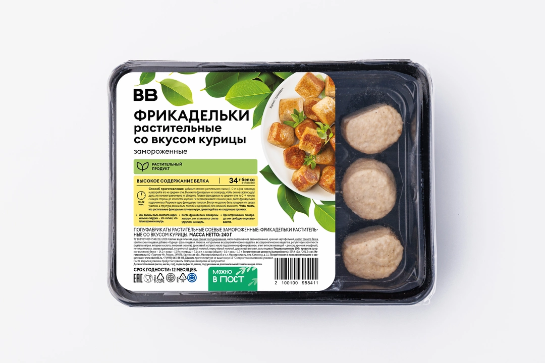 Нежные фрикадельки с мягким вкусом, напоминающим куриное мясо. Они получаются сочными, с лёгкими пряными акцентами и сбалансированной солёностью. Их можно обжарить на сковороде: просто следуйте инструкции на упаковке, и через несколько минут блюдо будет готово. К фрикаделькам подойдёт гарнир из пасты, картофельного пюре или овощей. Их можно добавить в суп или подать с соусом в качестве самостоятельной закуски. Такой вариант оценят те, кто предпочитает растительную пищу. Продукт отличается высоким содержанием белка.