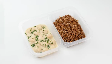 Фрикадельки в сливочно-перечном соусе с гречкой